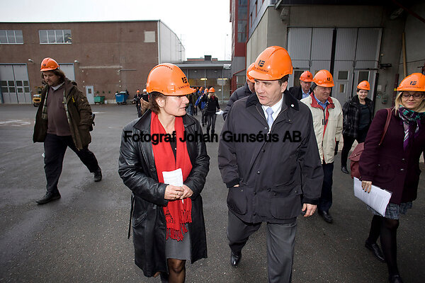 Socialdemokraternas partiledare Stefan Löfven inviger en pilotanläggning för framställning av alger för olika energiändamål.